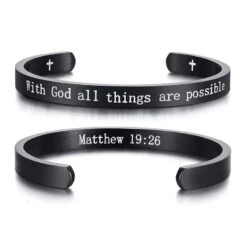 Remember that “With man this is impossible but with God, all things are possible.” Achieve the best in you with this powerful statement engraved on this nice scripture bracelet.