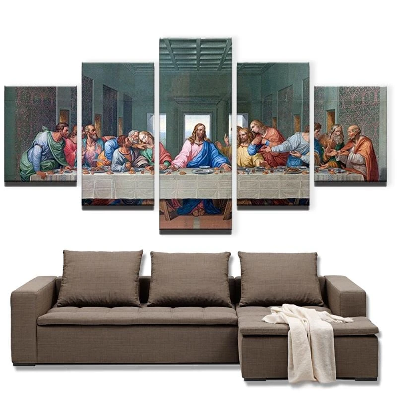 Decorate your dining room with this beautiful representation of Jesus Christ and His disciples. This Last Supper Multi Panel Canvas is composed of five paintings that will give your home a unique charm and inspire faith in the whole family.