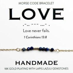 The perfect gift for a loved one, this minimalist bracelet carries a secret message that only the wearer will know using Morse code. Take comfort in the words of the Bible with a quote from 1 Corinthians 13:8 on the backing card: “Love never fails”. Packaged inside a premium gift box.Â