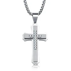 Let your faith shine by wearing this beautiful men’s silver diamond cross necklace. A good reminder to stay faithful !