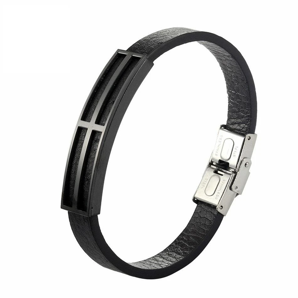 Beautiful men’s black cross bracelet representing the path of Jesus on earth. Wear this cross bracelet to remind you of the greatness of God and that He sacrificed His only begotten Son. Very comfortable to wear this black cross bracelet is made of stainless steel and leather to last long.