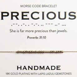 A beautiful and thoughtful gift for a loved one or yourself. This minimalist Christian bracelet carries a secret message that only the wearer will know using Morse code. Take comfort in the words of the Bible with a quote from Proverbs 31:10 on the backing card: “She is far more precious than jewels”. Packaged inside a premium gift box.