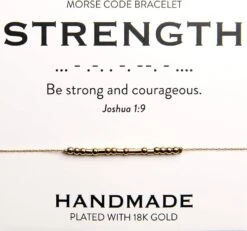 A beautiful and thoughtful gift for anyone going through a difficult time including bereavement, illness, divorce, heartbreak or job loss. This minimalist Christian bracelet carries a secret message that only the wearer will know using Morse code. Take comfort in the words of the Bible with a quote from Joshua 1:9 on the backing card: “Be strong and courageous”. Packaged inside a premium gift box.Â