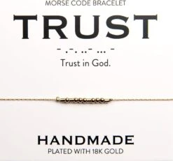 A beautiful and thoughtful gift for a loved one or yourself. This minimalist Christian bracelet carries a secret message that only the wearer will know using Morse code. Take comfort in the words of affirmation on the backing card: “Trust in God”. Packaged inside a premium gift box.Â